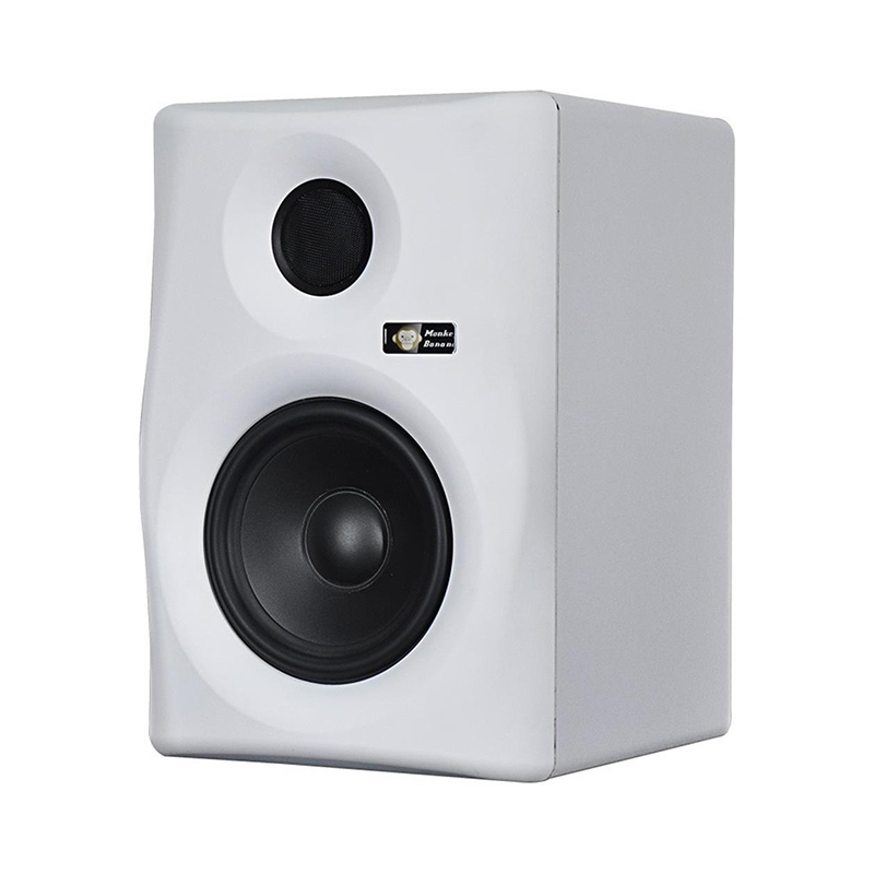 Gibbon 5是目前Monkey Banana家族中价格最平易近人的一款监听音箱。此款监听音箱设计为紧凑型近场监听, 专为各类空间有限的录音环境提供解决方案,它可以被放置在一个极其狭窄的最佳聆听位置工作,从而补偿大多数 用白面临的空间缺失的问题。该款入门级监听音箱配置了同更高级Turbo系列一样的1英寸优质蚕丝球顶高音扬声器, 以确保用户在长时间混音过隍中不会产生丝毫疲惫感。Gibbon 5低频采用的是5.25英寸防磁聚丙烯盆低音扬声器。 Gibbon 5为A/B类双功率放大器设计。高音扬声器和低音场声器分别通过单独定制的功率放大器驱动以达到最大动态 和最佳性能。Gibbon的接入方式一应俱全,包括平衡XLR,6.3mm TRS以及非平衡RCA莲花头输入。